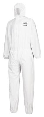 hergestellt aus einem komfortablen, strapazierfähigen Polyester-Trikot-Gewirk - laminiert mit stabilisierender Polyethylenbeschichtung. Zur praktischen Ausstattung gehören eine elastische Kapuze, Bündchen und Taille sowie ein Zwei-Wege-Frontreißverschluss und eine Abdeckfrontleiste zur zusätzlichen Sicherheit