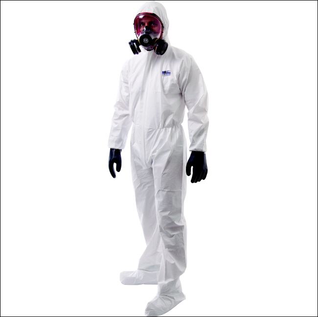etwas festerer Schutzoverall (63g) mit integrierter Schicht gegen Mikroorganismen (Bakterien) |
